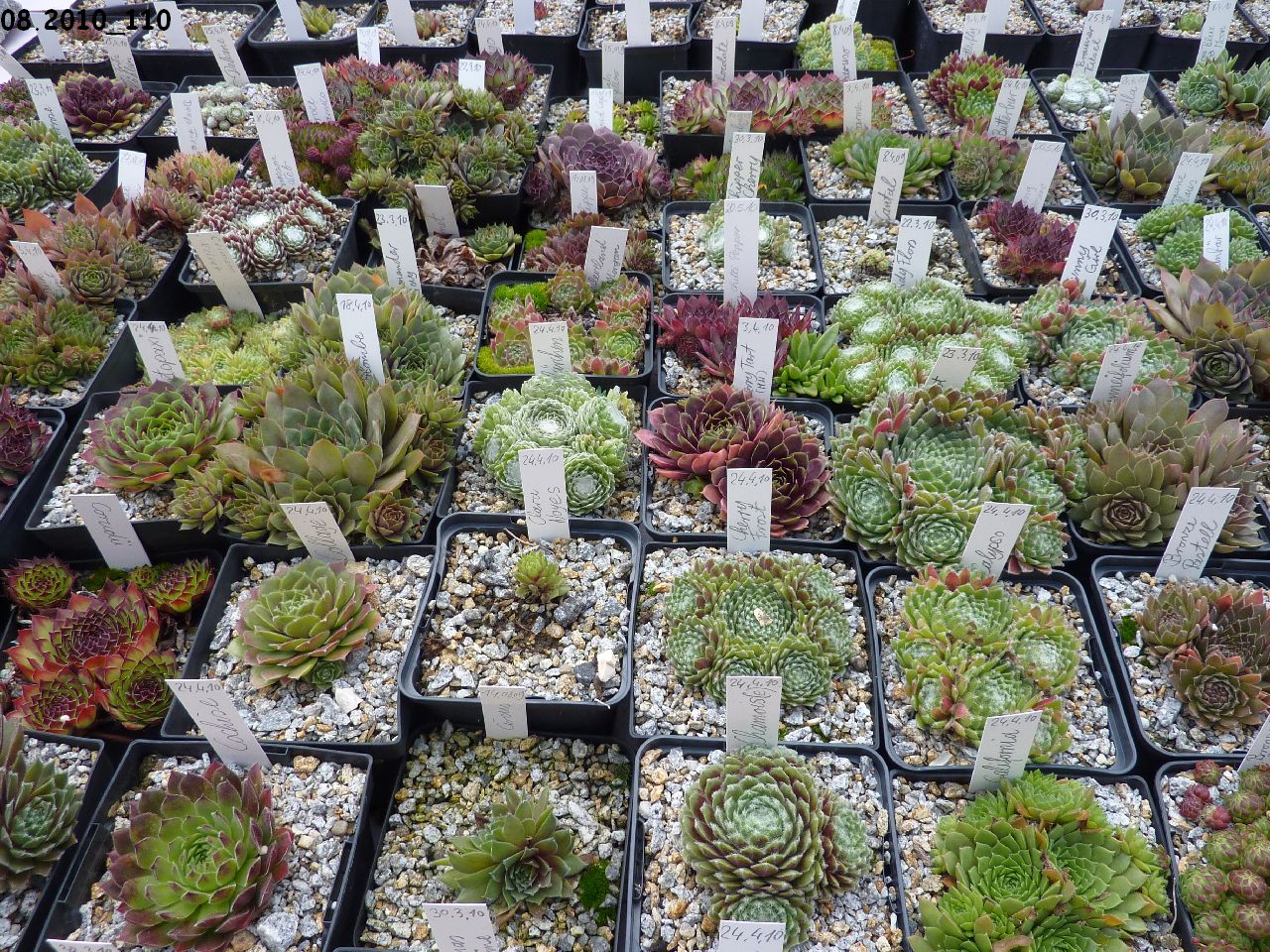 Sempervivumsorten auf dem Tisch