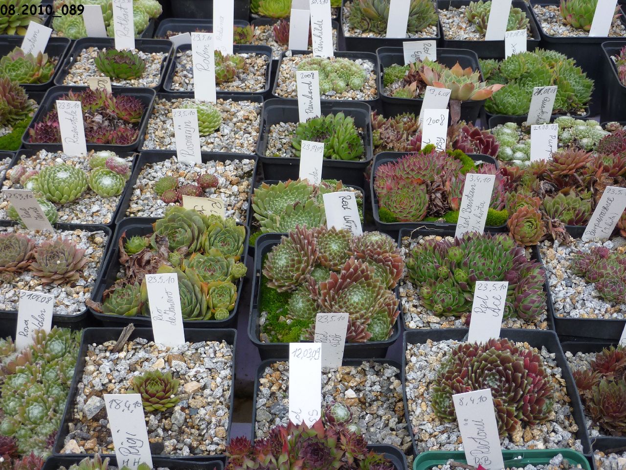 Sempervivumsorten auf dem Tisch