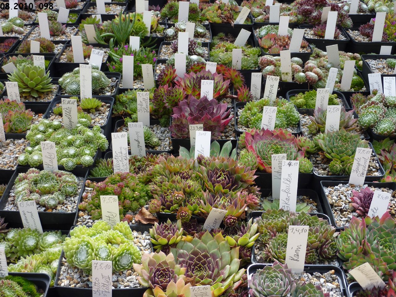 Sempervivumsorten auf dem Tisch