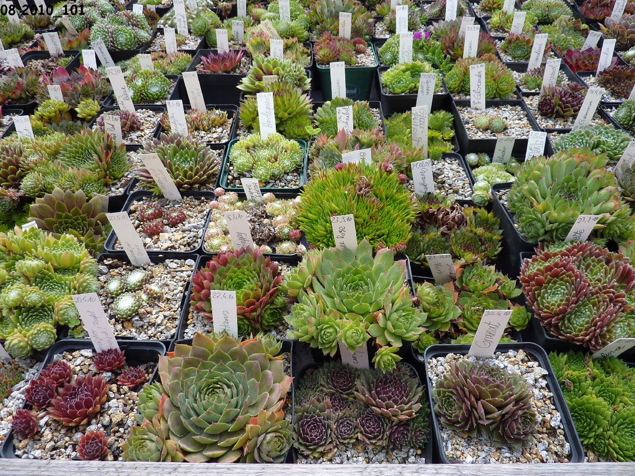 Sempervivumsorten auf dem Tisch