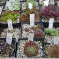 > Sempervivumsorten auf dem Tisch > 40 Images