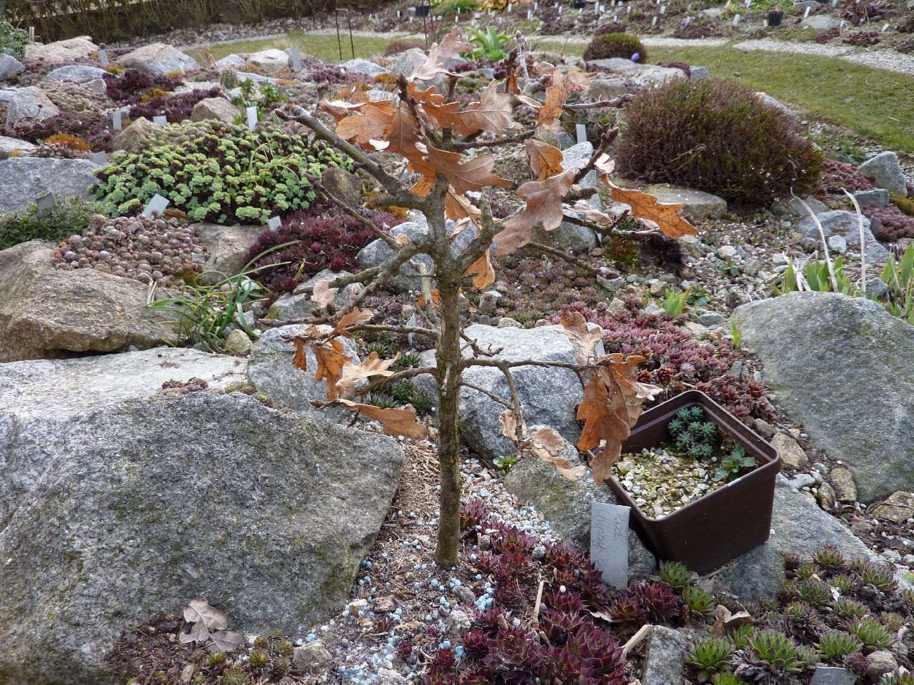 Quercus robur als Bonsai gezogen (Alpinum 2008 )Stiel - Eiche / Deutsche EicheSo - Halbschschottrig , sandig , kiesig , durchlässig , frisch humos7-50 cm