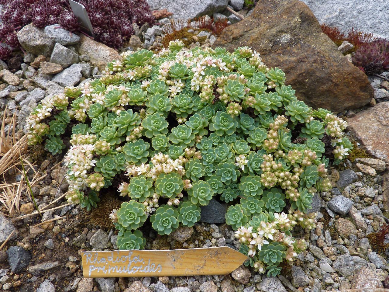 | Rhodiola rosea " rot " ( Alpinum 2010 klein ) | Rosenwurz | - | Schotter,kiesige , nicht zu nährstoffreiche und nicht zu trockene Standorte - gern zwischen Steinen. | 5 - 7 | gelb + orange,purpur | 5 - 20 cm |
